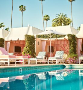 Candy cane stripes are having a bit of a moment in interior design, adorning floor-to-ceiling curtains, accent chairs, cushions, and ceramics in delicious primary colours. Stripes are a deceptively versatile tool in your design armoury, providing some clever visual effects to widen, elongate or heighten the proportions of your room. This style is traditional and yet modern, and it may have served as an inspiration for the designers of The Beverly Hills Hotel in Los Angeles, with matching sun loungers and parasols poolside, it oozes old Hollywood glamour.