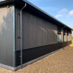 Taking inspiration from the original barn we wanted to replicate the corrugated metal frame and have used Marley Farmscape roofing and elevations. Charred timber cladding brings a striking look, the burnt surface offers the timber cladding a natural protection against insects, mould and weathering! Powder coated guttering, downspouts and flashings in dark anthracite complete the look.