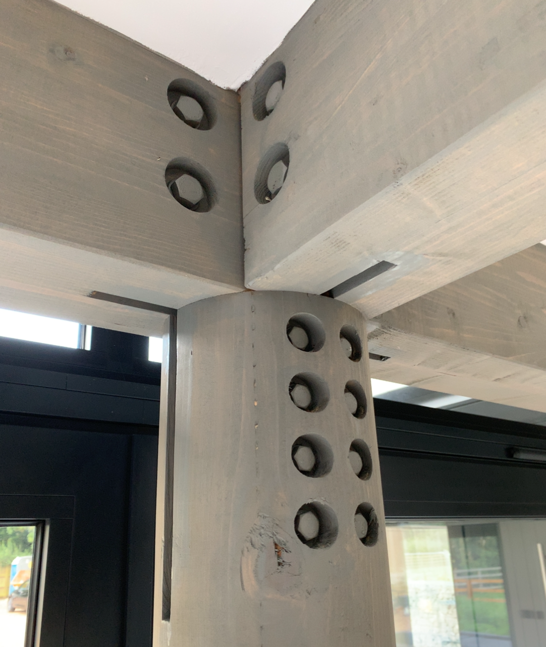 Attractive glulam beams and columns support the structure of the building inside, elongating the high ceilings, making them a lighter natural alternative to concrete or steel. Floor to ceiling aluminium windows allow natural light to flood in, giving an air of warmth to all rooms from within. Providing a variety of window systems, that not only look good are energy efficient and easy to maintain.